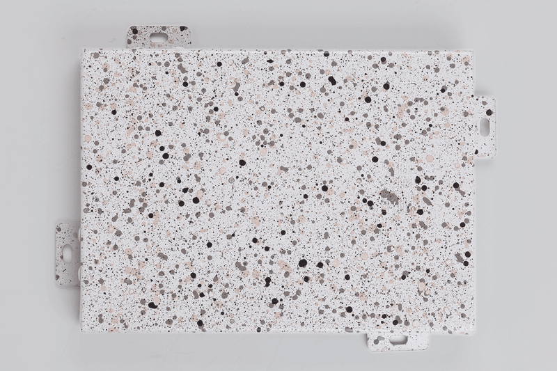 仿石紋氟碳鋁單板的主要特征是鋁單板表面逼真的石紋色,裝飾效果喜人,且質(zhì)量輕、安裝方便,幾乎可以替代大理石這種幕墻材料。它主要通過熱轉(zhuǎn)印等工藝,把石紋色轉(zhuǎn)印到鋁板表面,然后再噴上氟碳罩光漆,經(jīng)過多次噴涂和烘烤,終客戶定制的石紋效果。